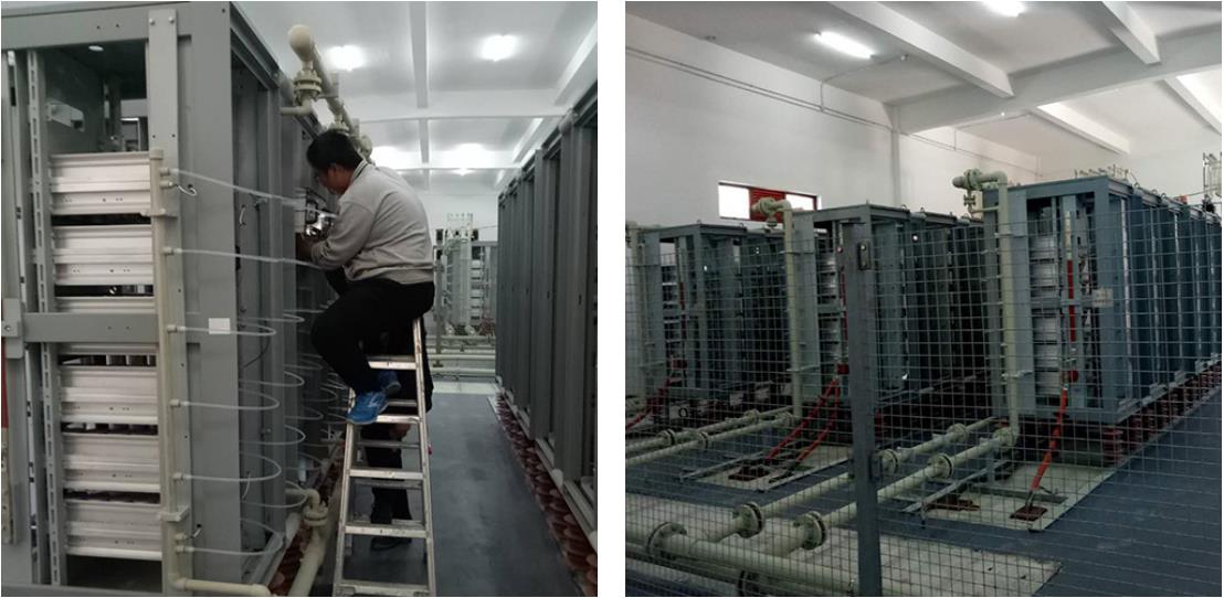 該項目SVG冷卻系統采用盛憶鎬純水冷卻設備,于2017年8月調試完成。為保證項目高效,順利如期的完成;公司制造、質量、技術部門和工程調試部成員團結一心,共同克服項目中技術難點等問題,最終得到了客戶高度的認可。